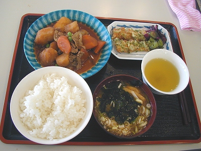 今日は所用があって千葉市緑区役所に行ってきました。当然昼食は食堂に直行! A定食440円を頼みました。 今日のA定食は肉じゃが定食。磯部揚げも付いてるぞお漬け物取り放題みそ汁にワカメ・ネギ入れ放題 ↑でも多少の遠慮は必要です 440円でこれが食べられると思うと幸せ感じます 他にももっと豪華なB・C定食、スパゲティ、カレー、うどん、そば、ラーメンなどラインナップも充実していますよ。 おまけ 定食の写真をとる私に食堂のおばちゃん、「どこかのお店の方?」といぶかしげな顔。「いえ、栄養制限のある病気にかかっているので、日々食べたものを記録しているんです」ととっさにごまかすダーク、、、。とたんにおばちゃん、かわいそうにという顔になって納得してくれました。そうダークは巨漢、、、。最後は「体気をつけてね~~」と送り出してくれました。 スミマセンプログのために撮影しています、おばちゃんウソついてゴメンナサイ。