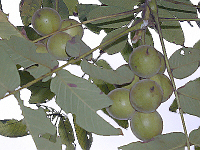 先日散歩していたら、偶然にオニグルミの木を発見。写真はこれ↓ 梅くらいの大きさの実がたくさんなっています。実の果肉はほんのわずか、この中に大きな種が入っていてそれがみなさんが見るクルミです。 最近はアメリカ産のウォールナッツというのがありますが、あれとは違いますよ。少し小さくて固いヤツです。子供の頃は金づちでたたいて食べていました。
