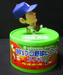 今、ジョージアの缶コーヒーに80`sプロ野球ヒーローズというフィギュアのおまけが付いています。長年のロッテファンの私ですが、なんと初回の購入で「村田兆治」様をゲット。↑2頭身ながらとりあえず「まさかり投法」↑ 顔はこんな感じ、、、わぁ~全然似ていません、残念!!他に 原・中畑(巨人) 掛布・バース・岡田(阪神) 山本浩・衣笠(広島) 高木豊(横浜大洋) 谷沢(中日) 福本(阪急) 落合(ロッテ) 石毛(西武) ブライアント(近鉄) 山本和(南海) など15種類もあります。