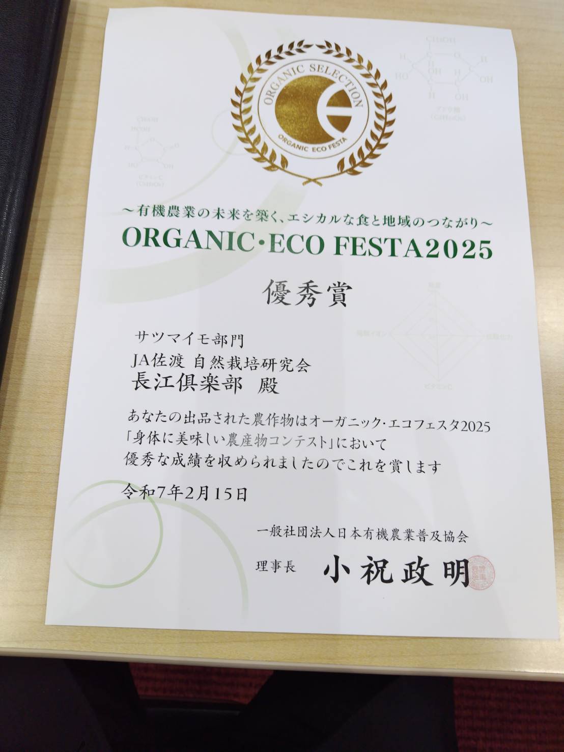 地域の有志と野菜作りに動いている長江倶楽部が、栽培したサツマイモが評価されこのたび賞状を頂くことになりました!どう評価されたというとなかなか説明しがたいのですが抗酸化力、硝酸 糖度などかなりマニアックですが、食べて体に良い野菜といった所かと (^_^;サツマイモ以外にも出品したのでサツマイモだけ数値が良かったのが なぜ?感もあるのですがまずは、ビギナーズラックとして喜ばしい事かと感じております。もう少し分析してまたお褒めいただけるようにまた春から作付けを頑張りたいなと!*************************佐渡・矢田農園 矢田徹夫http://park5.wakwak.com/~yatafarm/yatafarmアットマークsky.plala.or.jpフェイスブックもやってます!https://www.facebook.com/sado.yatafarm*************************