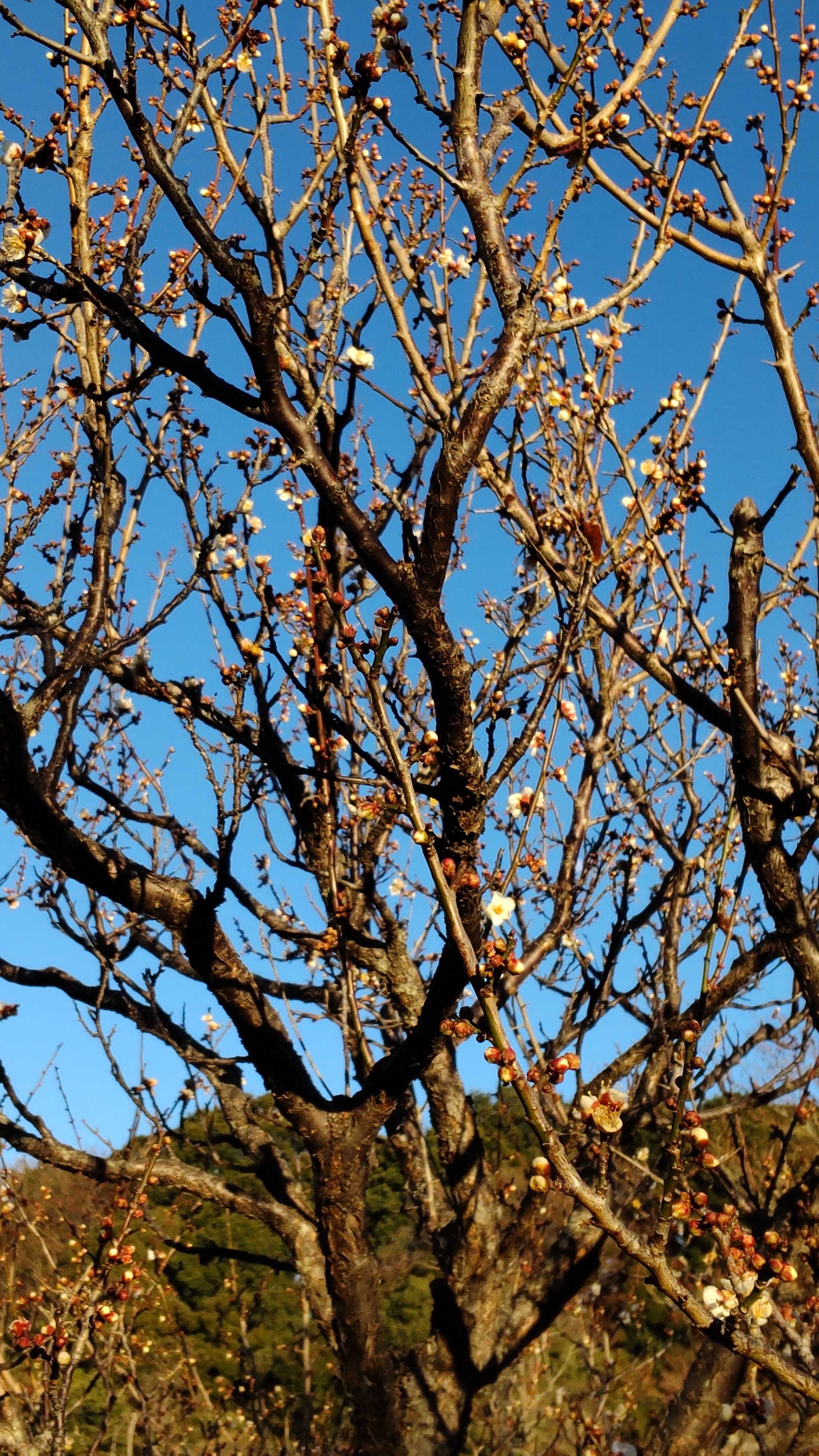 20本くらいの梅林がありますがその中の1本がほころんでる。