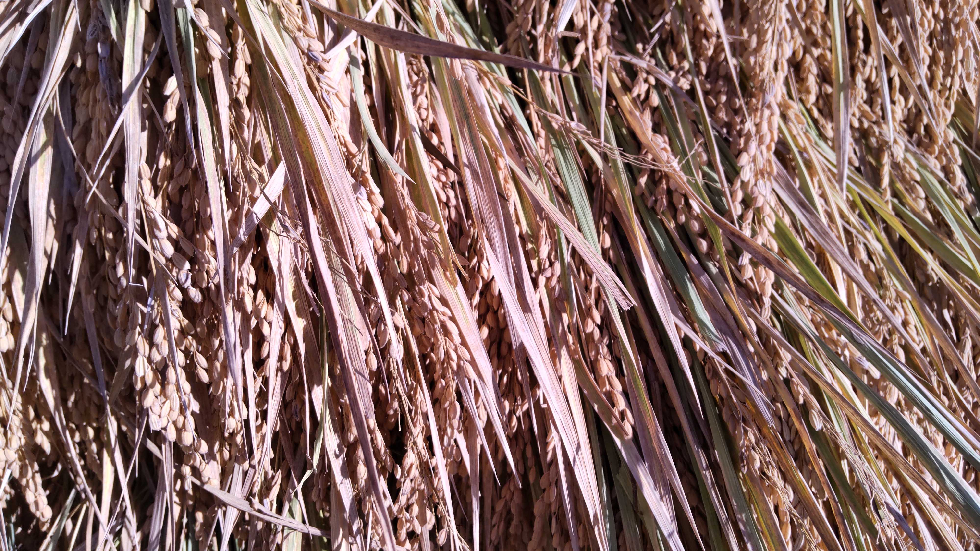 公園の中の田圃の脇には天日干しの稲。