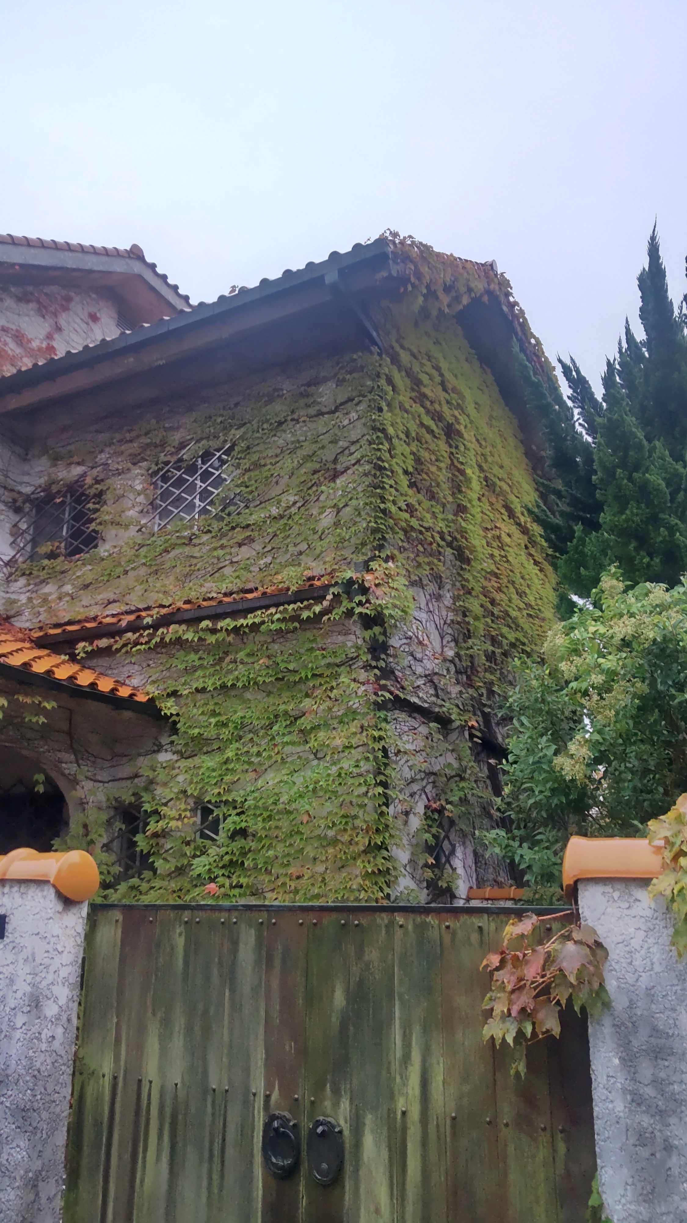 この洋館の蔦はまだ色が付きませんねえ。