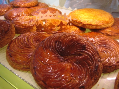 新年明けましておめでとうございます。昨年中は大変おせわになり、有難うございました。本年もどうぞ宜しくお願い申し上げます。 フランスの新年というのは、何ともそっけないもので、クリスマスで其の年は終わり・・・という感覚がある。新年は、ただ、2007年が2008年に変わる・・・暦が変わるという認識でしか無い。ヨーロッパにおいては、アジアのように、新年に対する強い思いは無いのである。それは、宗教的なものであると思う。 新年になって、静まり返っていたパリの街に活気が戻ってきた。 今日は皆が待ちに待った、エピファニー。キリスト教の公現際である。 ★★★公現祭(こうげんさい、ギリシア語:エピファネイア(現れ、奇跡的現象の意))は人としてこの世に現れたイエス・キリストが神性を人々の前で表したことを記念するキリスト教の祭日。〔ウイキぺディア百科事典参照〕★★★ そう、エピファニーから食べ始めるのが、今や日本でも名前を知られ始めた、「Galette de Roi」ガレット・デ・ロワ!!ウチのお店では、昨日から販売を始めたのであるが、昨日今日の2日間で、何と、300個のガレットを完売。 弊店のガレットは、一種類。フィュタージュにアーモンドクリームを挟んだ、クラッシックタイプ。今日日曜日は、お店の外までの行列が切れず、一日中大忙しでだった。 最近は、商売目的で、早くからガレットを販売したり、色んな味のものを販売したりと、可也伝統がくずされている感も否めないが、それでも、弊店は、王道を突き進み、悪魔でも、クラシックを通している。 この、ガレット・デ・ロワと同じ様に、中にフェーヴ〔小さな陶器のおもちゃ〕を入れて販売するのが、ブリオッシュ・ボードレーズ。こちらも、王冠と一緒に販売する。ブリオッシュで出来た、王冠のパンである。 ガレットも、ブリオッシュもどちらも超人気の商品で、エピファニーを迎えて、ようやくヨーロッパの新年に活気が出てくる。 1月3日に行われた、ガレット・デ・ロワ コンクールの結果も、そろそろ発表になるころ。結果は追って、ブログにてご紹介する予定。 クリスマスから、ガレットまで、食べて食べて食べまくりの年末年始。ガレットが終わったらちょっとダイエットしなくては・・・というこのごろである。 本年も、フランスの美味しい情報を発信していきます。どうぞ、ご愛顧くださいませ。