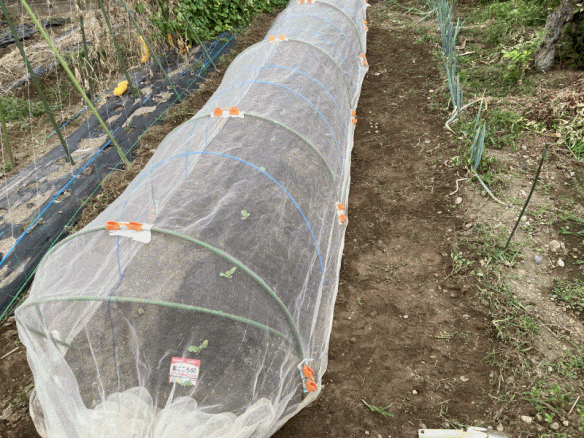 10月1日、その白菜が順調に成長をしているのを、防虫ネット越しに観察した。