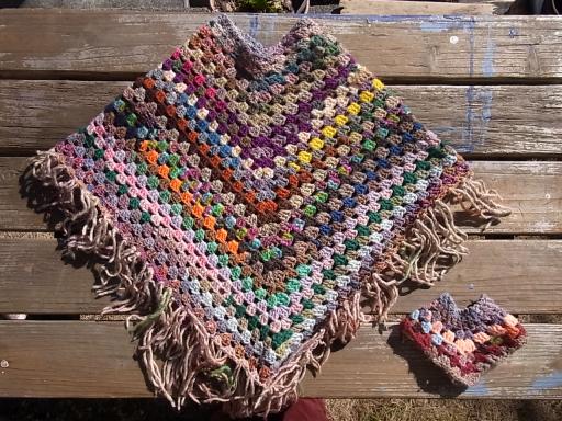 久々です!まだまだ寒いですね~今日はKIDSのポンチョです!暖かいですよ~そして横にあるちっちゃいポンチョは、縫いぐるみのポンチョです。縫いぐるみも喜んでいるはずです