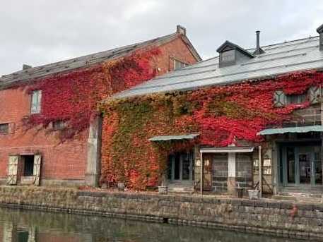 小樽にも久しぶりに寄りました。運河沿いの倉庫のような建物ですね。壁に張り付いている蔦が紅葉に染まっておりました。