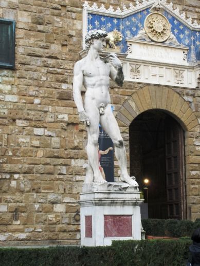 ベッキオ宮殿前に立つミケランジェロのダヴィデ像。