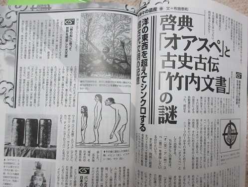 昨日発売された月刊誌「ムー7月号」に啓示書「オアスペ」と古史古伝「竹内文書」の不思議な符合について書いた記事が掲載されております。