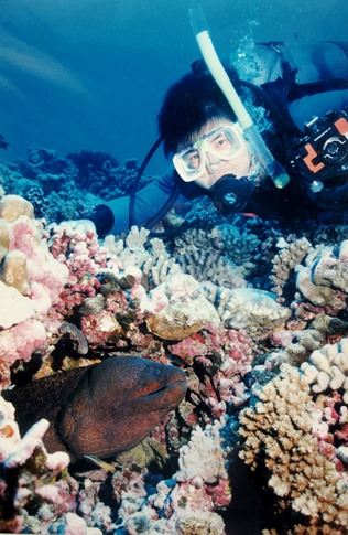 そして、こちらは潜っているときに撮ってもらったウツボとのツーショット。
