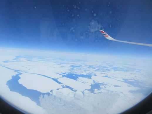 行きは前回同様、アラスカ、グリーンランド、アイスランドを通る北極圏ルートでした。
