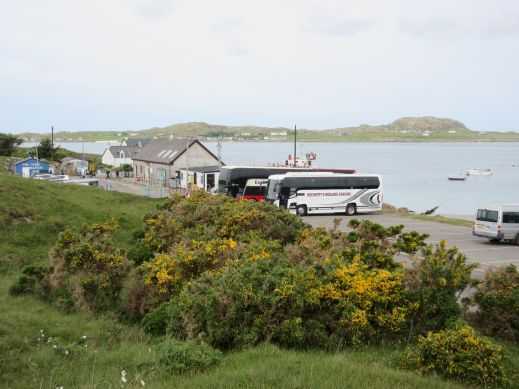 観光バスの向こうに見えるのがアイオナ島ですね。