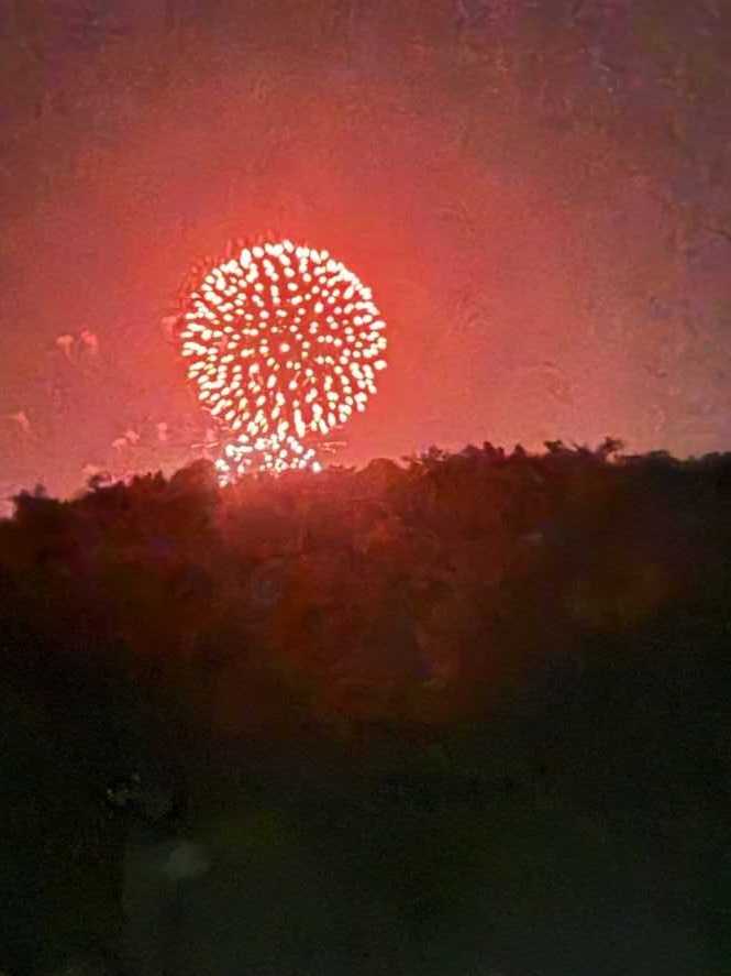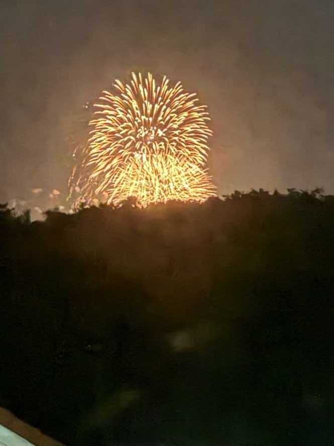 八月には花火大会を遠くから見学。