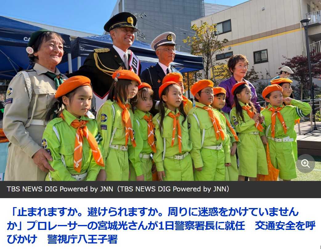 プロレーサーの宮城光さんが、、八王子警察署の一日署長に就任 交通安全を呼びかけとの…