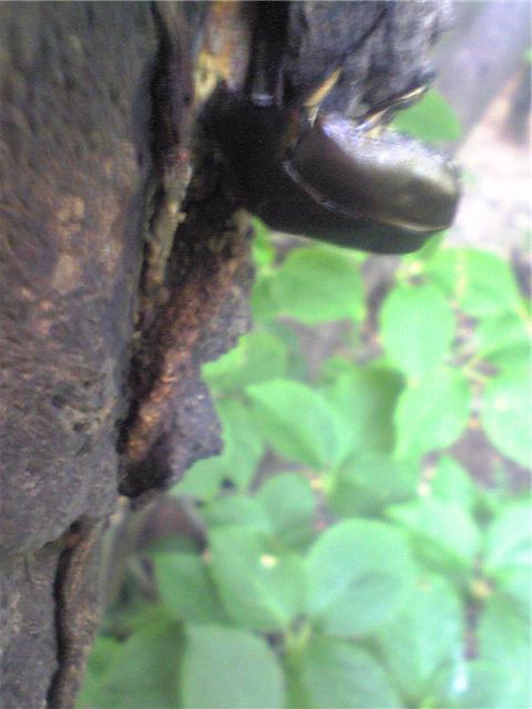 カナブンとヨツボシケシキスイが出てきました。次はカブトムシかクワガタはこの前でました。このヨツボシケシキスイがこの蜜場の守り主です。この種類が皮の下にもぐりこみ、なめることで発酵してきます。さらにもぐり、蜜の出をよくします。