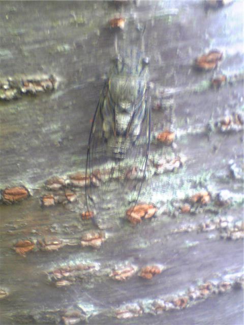 せみ , 羽化 , ツクツクボウシ:夕方になると昼と違って涼しい季節です。まだセミたちも鳴いていますが、ツクツクボウシの羽化前の幼虫に会いました。背中が割れてきています。