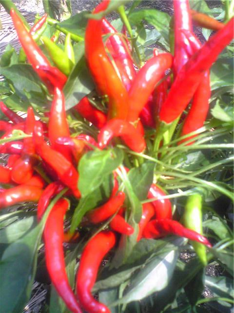 収穫 , トウガラシ , オニオン:とうがらしもいろんで来ました。間違って食べると口から火が出ます。イタリアンオニオンもできてきたようです。