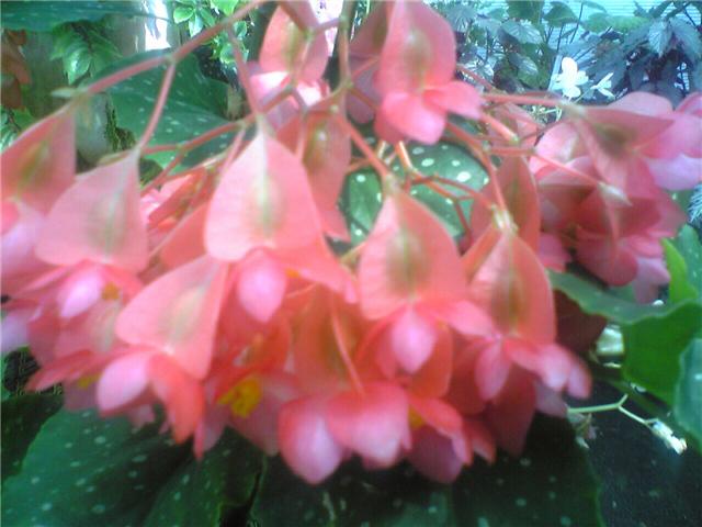 はな , ベゴニア , 木立てベゴニア:暑い夏にはベゴニアは枯れてしまい、木立てベゴニアの時期になりました。今を盛りと咲いています。花言葉:(ベゴニア)「親切」「片思い」「丁寧」「幸福な日々」(白)「親切」(木立ベゴニア)「親切」「つりあいが良い」