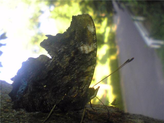 秋 , ちょう , ルリタテハ、夕日、蜜酒場:秋の夕方の風景です。ルリタテハの夕日のシルエットです。秋を感じる写真です。いまだにみつ酒場には蜂やクワガタがきています。羽を開くと綺麗な瑠璃色です。