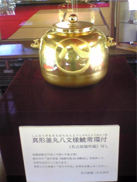 金、茶釜、名古屋城 :金の茶釜で沸かしたお湯で一杯。本物はお城に飾ってあるが、これも相当する代物です。銘柄、金関連:3441 5713 5724 7889 7937 8740 8749