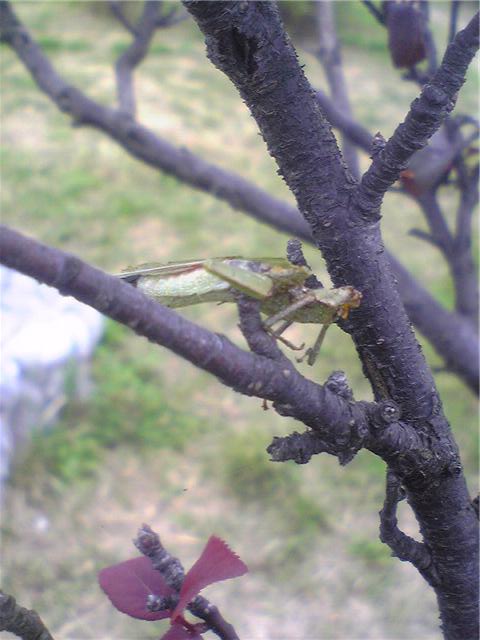 モズ、むし、えさ:本当に久しぶりにモズのえさを見つけました。虫を木に刺して貯蔵したのでしょうか?バッタもたまったものでありません。