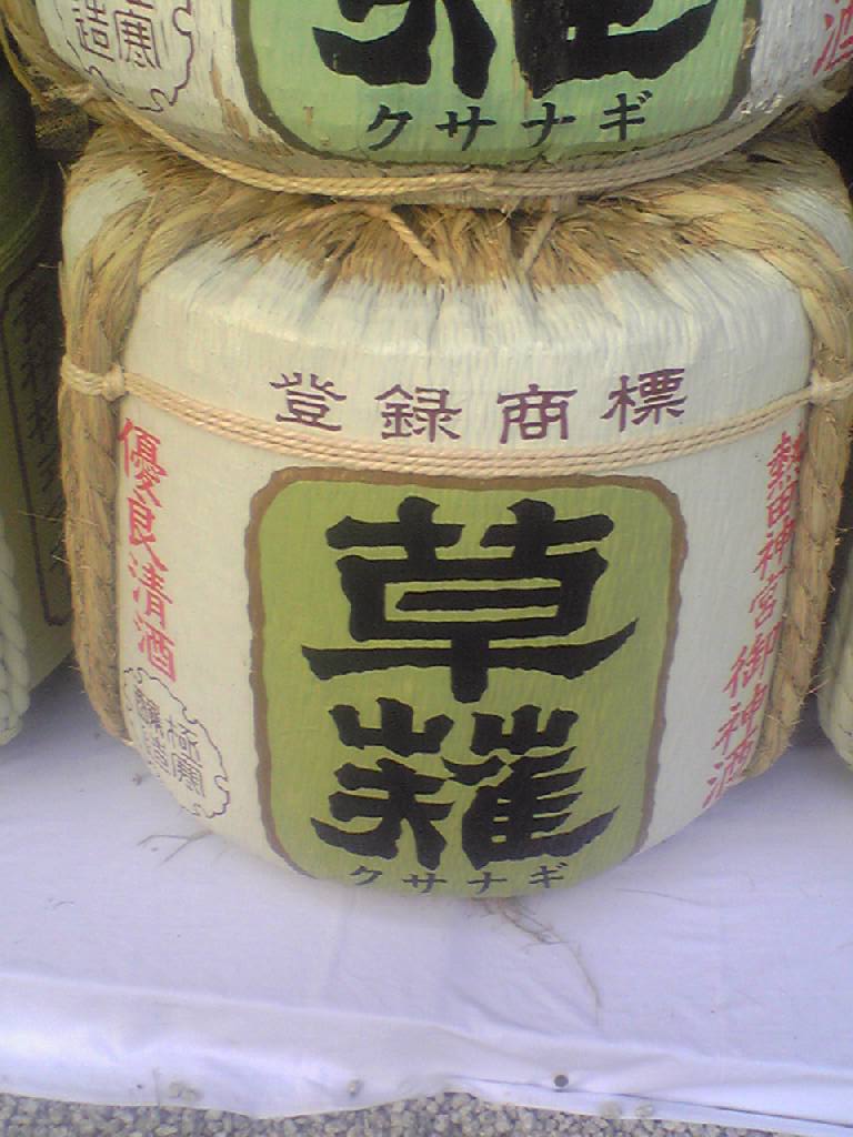 熱田神宮の奉納された酒にこの名前が。由緒ある酒です。草薙(くさなぎ) 上撰秋田屋(株)清酒草なぎ 剛(くさなぎ つよし)チョナン・カン(???; Chonan Gang)」アイドルグループSMAPのメンバー 活動内容 俳優・声優・タレント・歌手 2009年4月23日の酒での事件が記憶に新しい。このような酒があるとはびっくりでした。 熱田神宮 熱田神宮のはなし もともとこの名古屋という街は、熱田神宮中心に「宮(熱田)の宿」という江戸日本橋から数えて42番目の東海道最大の宿場町として盛えていました。そこへ徳川幕府の計画で近くの清州という町が、那古野という地名の現在のところへ移され「名古屋」という街になったものです。その本来中心である「宮(熱田)の宿」は、熱田神宮の門前町でした。 熱田神宮はその昔から「熱田さん」と呼ばれて親しまれています。また年間1000万人に近い参拝の人々でにぎわっています。熱田神宮には祭られている神さまがいて、それを、祭神といい熱田大神(あつたのおおかみ)のことです。その他に天照大神(あまてらすおおかみ) スサノオ尊(すさのおのみこと) 日本武尊(やまとたけるのみこと) 宮簀媛命(みやすひめのみこと) 建稲種命(たけいなだねのみこと)があります。祭神の熱田大神とは、 天照大神のことで、三種の神器の一つである草薙神剣をシンボルとしています。日本武尊(やまとたける)は、ここでなくなり、草薙神剣は今の熱田の地にまつられました。今からおよそ1880年前のことです。 お祭りは、年間約60回の祭典と、約10回の特殊神事が昔のまま、現在も行われています。数多い祭典の大半が産業、生活と深い関係があります。中でも一番大きなお祭りは、「あつた祭り」の名で呼ばれる6月5日の例祭です。 境内は、昔から雲見山・蓬莱島の名でよばれ、街の中にありながらとても静かで心のオアシスとして親しまれています。面積は約19万・(約57600坪)、飛地境内地をあわせると約29万・(約87900坪)にのぼります。神苑の樹木はクス・ケヤキ・カシ・シイ・ムク・イチョウ・クロガネモチ等の広葉樹がよく育ち・ことにクスは、巨木が多く、寿令1000年前後と推定されるものが数本あります。有名な木には、花が咲いても実のならない「ならずの梅」、茶人の愛好する「太郎庵椿」、弘法大師お手植えと伝える「大楠」などがあります。 境内と境外には、本宮のほかに、ひとつの別宮、12の摂社、31の末社がまつられています。本宮の社殿の構造は、尾張造という特殊な様式だったそうですが、明治26年から現在のような神名造に改められ、現在の社殿は昭和30年に、その造営が完了して、遷宮を行ったものです。(文章は熱田神宮の資料より使用しています)