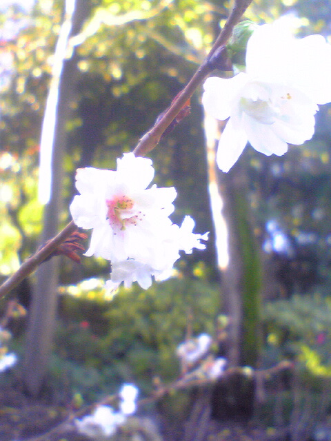 子福桜、この時期の桜に子福桜があります。各地で見られます。真ん中が赤いのは受粉した花です。徳川園にて