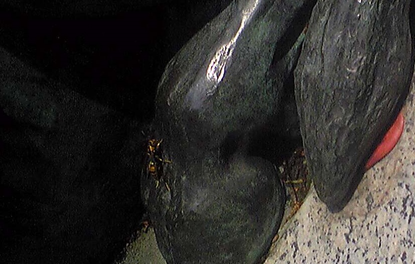 この時期は女王蜂が竹などから出てきて、餌をとります。アシナガバチの一種です。神社の牛のしっぽにいました。縁起がいいです。この蜂が子宝に恵まれますように。