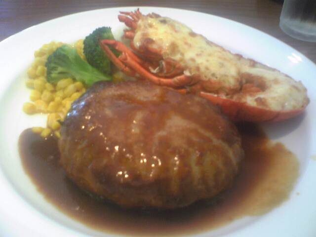 エビ様が鎮座しています。これはうまい。ハンバーグはミキサーで練ったようなちょっと硬め。名古屋港の水族館前にある。