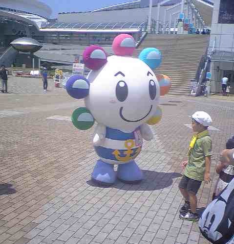 近づきがたいのでしょう。観覧車のキャラクターが来てくれと、この暑いのにご苦労さん。