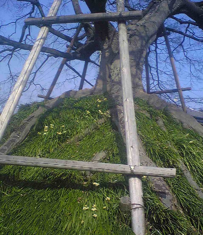 東海道にも春が来た。一里塚の花が咲き、笠寺一里塚で春を感じる。