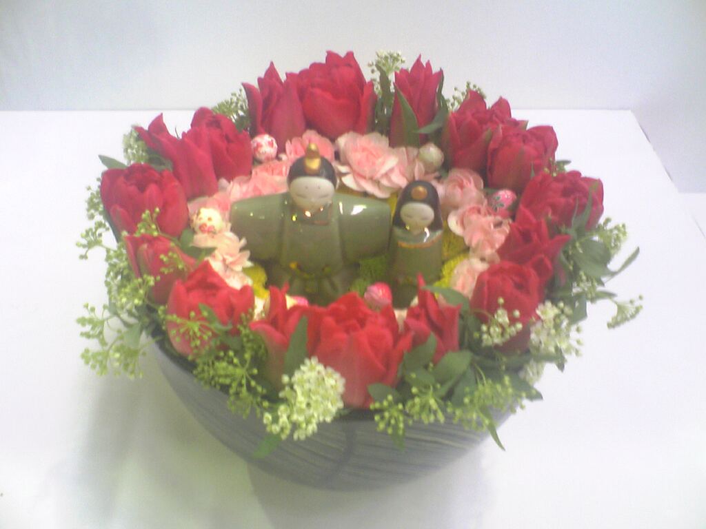 フラワーマルシェでの花のお雛様これとは違うが、自宅でもお雛様飾ってある。