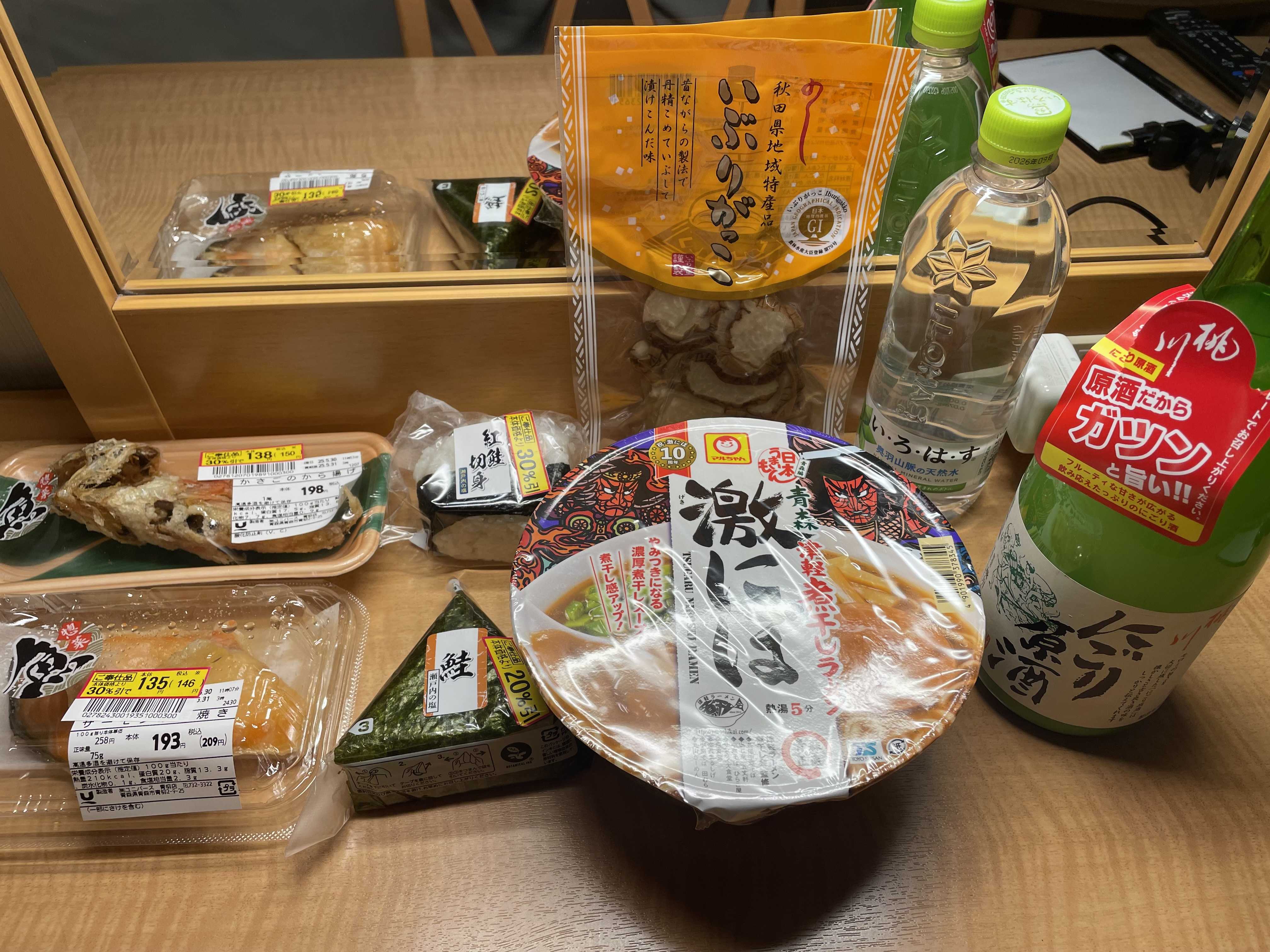 青森空港に着いた。青森空港発青森空港線バス青森駅行に乗り新町2丁目で下車。東へ20分ほどゆっくり歩く。静かで涼しい。時折り個性的な居酒屋があり心が踊る。スーパーマーケット「ユニバース 」で2292円の部屋食宴の仕込み。津軽煮干しラーメン激にぼ278 いぶりがっこ輪切り278 かさごのから揚げ198–30%60 サーモンかま焼き193–30%58 直巻おにぎり紅鮭切身218–30%66 手巻おにぎり鮭158–20%32 ★にごり原酒桃川998。本日の宿「アップルパレス青森」は朝食付きで1泊10871円。5000円分の補助券使って5871円。部屋は5階の509部屋。4階の大浴場を1人で使えて大満足。部屋にもどって居酒屋部屋を開店しよう。原田誉一の動画配信https://youtu.be/zH9Z1rdbdp8?si=hFAMonYvbx6JpqsS