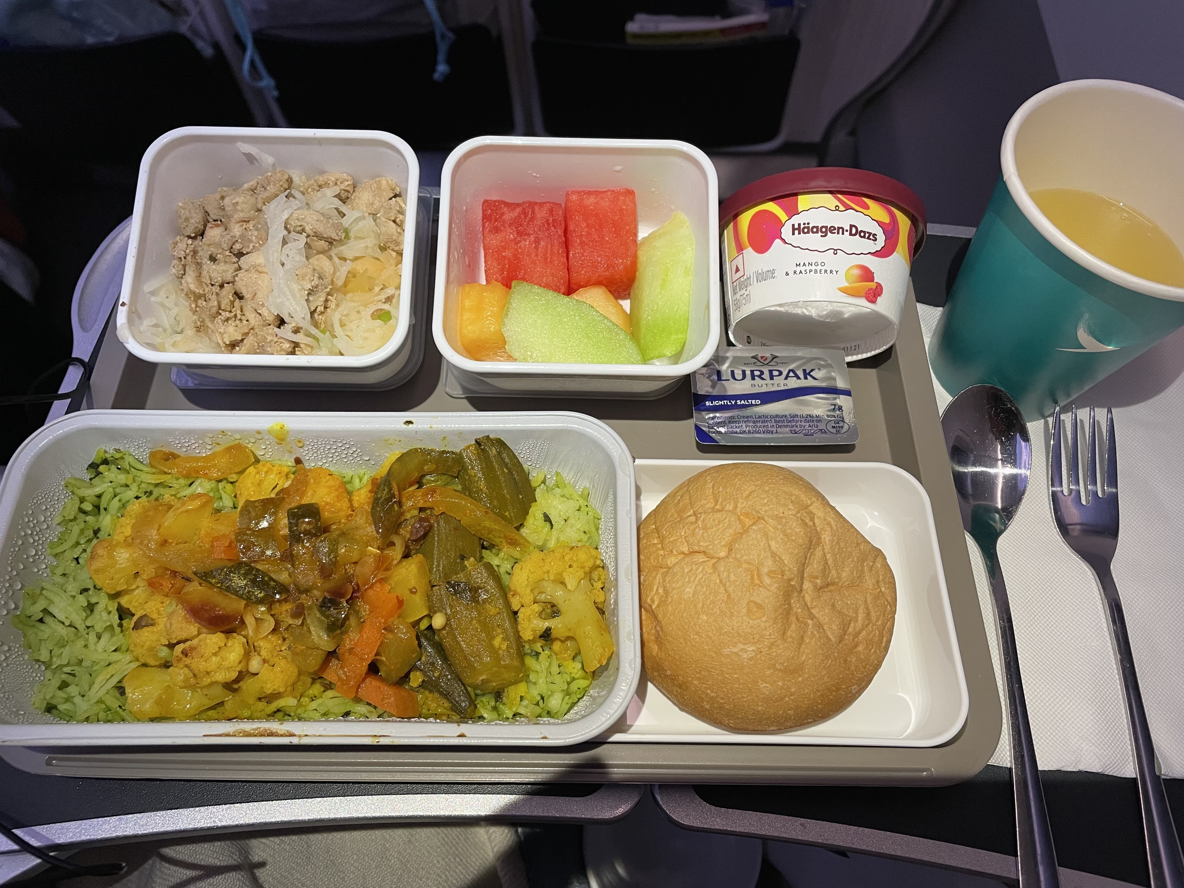 2回目のKIXラウンジ関西。前回は気づかなかったが「エビスビールあります」。今回はアップグレードなしで普通にエコノミー席を楽しむ。機内食はすき焼き定食。サッポロビール飲んでワインはROLF BInDER 2024の白と赤。飲食しつつ映画『オッペンハイマー』を観る。主役はキリアン・マーフィーだが、私の好きなケネス・ブラナー(ポアロ)・ロバート・ダウニー・Jr(アイアンマン)・マッドデイモン(ジェイソン・ボーン)が出てきて嬉しくなる。『猿の惑星;新世紀』に出ていたジェイソン・クラーク(マルコム)や『ボヘミア・ラプソティ』のラミ・マレック(フレディ・マーキュリー)も出てきた。おお〜。香港国際空港のキャセイラウンジで雲呑湯麺などを食べてシャワーを浴びる。久しぶりの深夜発の欧州便。14時間の飛行。お腹いっぱいだったけどベジタブル機内食マサラ野菜と緑プラオごはんは初めて味わう美味しさだ。夜食のカップ麺を注文すると香港エッグタルトもついてきた。これも初めての味わいで美味しい。朝の機内食は中華粥。以前のとは違い香港点心3品つきで味も数段上。先週のプレミアムエコノミー席の海老ごはん同様キャセイの機内食は進化している。