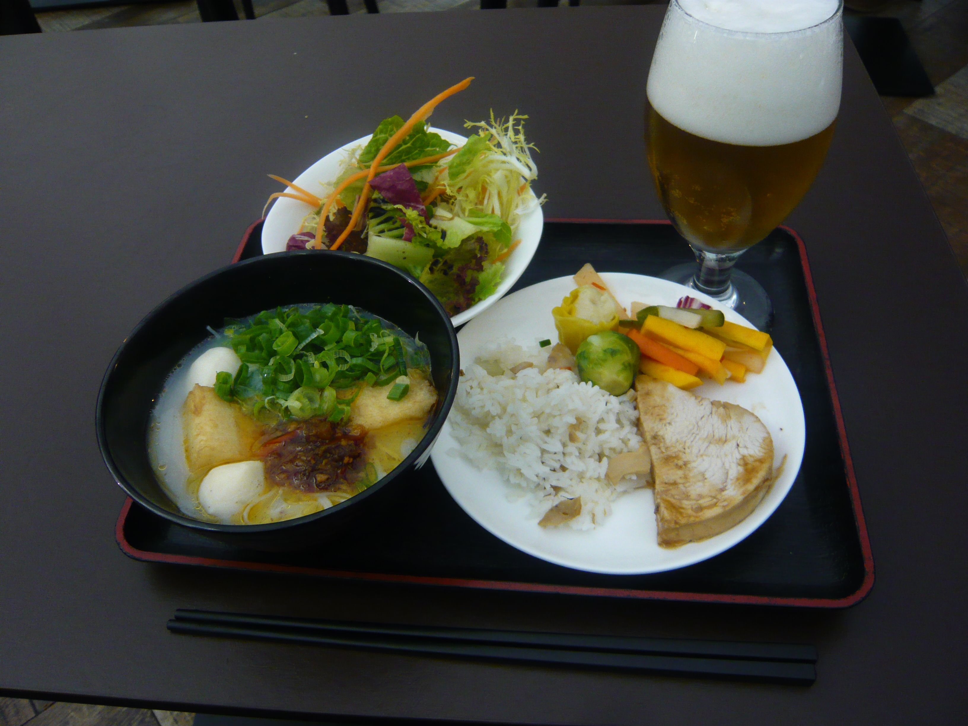 カールスバーグの生ビールを注ぎ名物の香港麺や香港料理をいただく。空腹ではないけれど、せっかくここまできたからね。