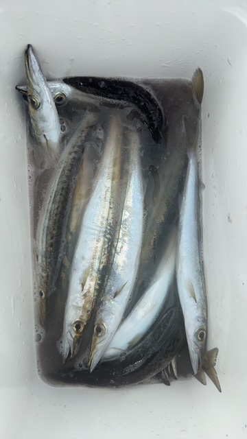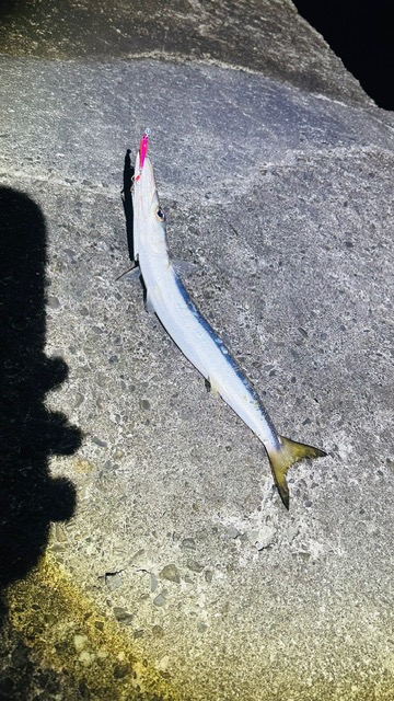 青物狙いだが、太刀魚の噂を聞いたので、深夜にチェックしてみた噂通り居た!掛かりが浅かったのか抜き上げで2つ落としたが、小さいながらも指2.5本~3本が4つ釣れたその後は無反応・・・早々に諦め、青物ポイントの前に仮眠そして青物ポイントではその他、写真撮り忘れたが35cm位のスマガツオ一つ帰りに息子が近くでライトショアジギやってるとの事で、少し参戦そこではメッキ類少々にイケカツオ1つ釣って遊んで息子とお別れで、今回のお持ち帰りは太刀魚のみでした