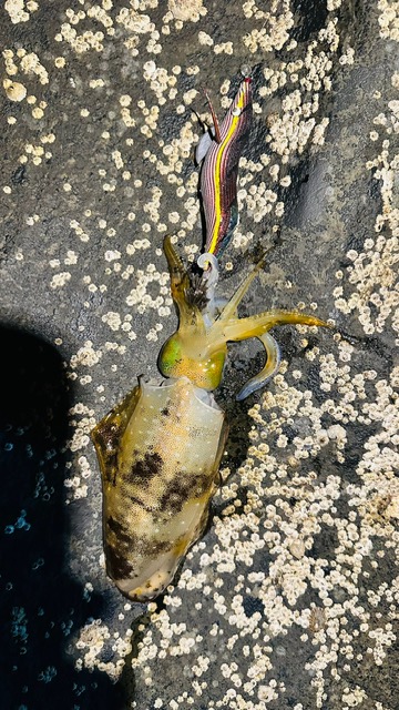 久しくイカ釣ってないので、今回はエギングオンリーで小さいけどなんとか釣れた