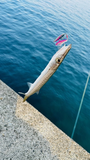 太刀魚釣れてるらしいので、どのくらいのサイズか確認のため出撃!先行者に聞くと、たまに3本が出るらしいとりあえずやってみると指2本無いわ