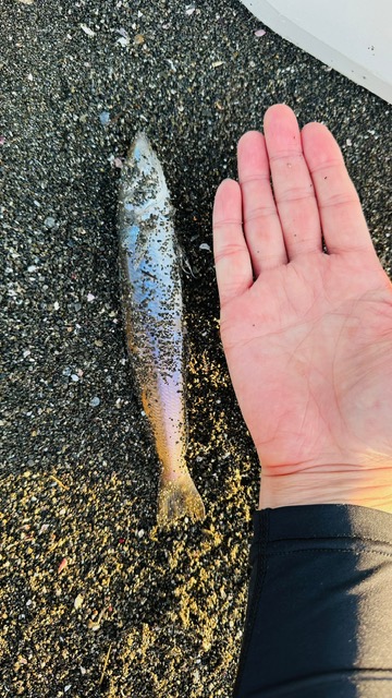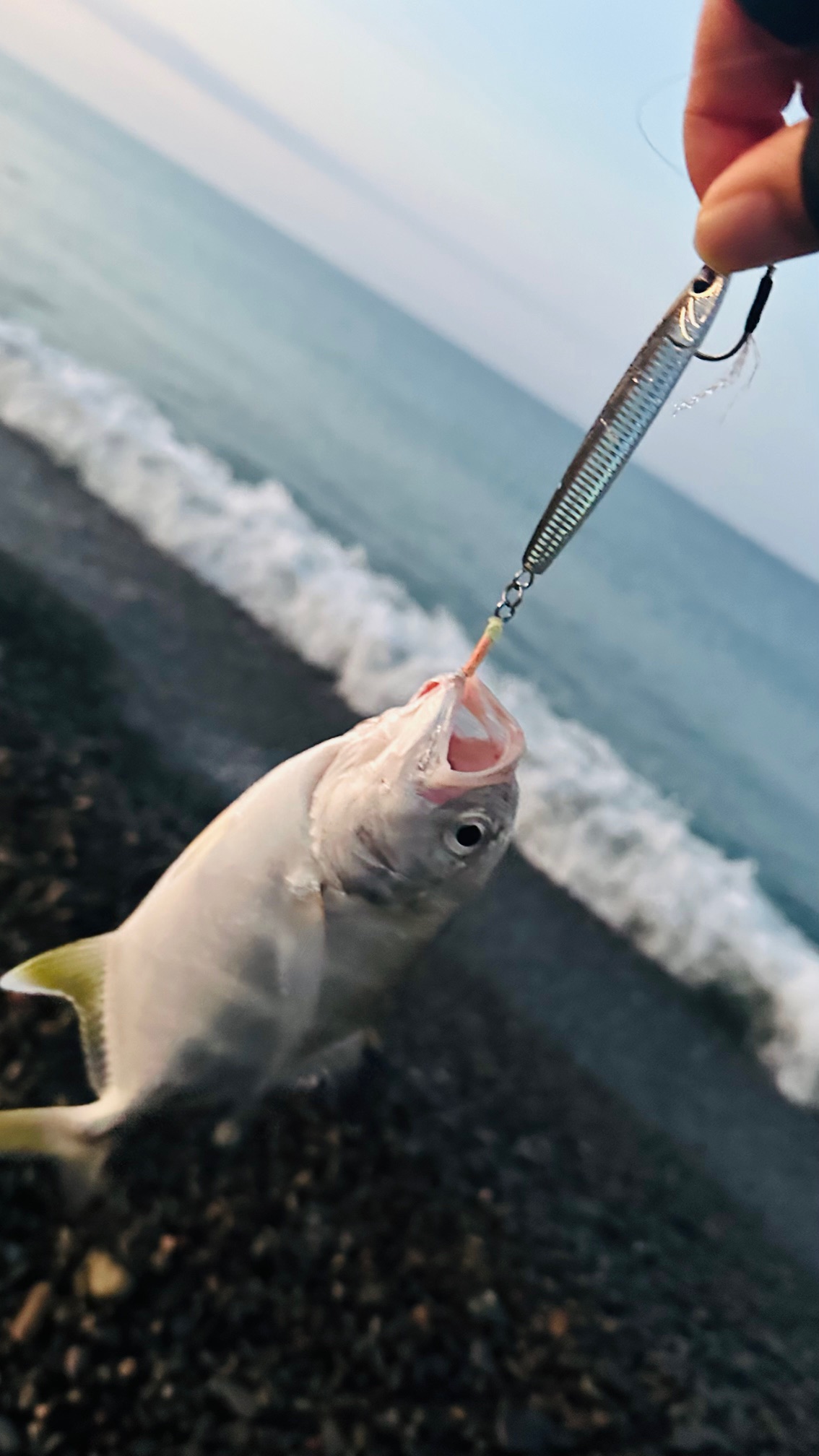 サーフにてライトショアジギあまりにも釣れんからジグサビキ投げたら小っちゃいアジが釣れたそれ以外は・・・