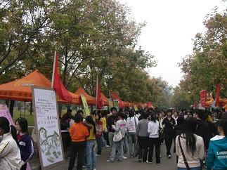 この週末は、校内で「クラブの勧誘」が行われていた。 音楽や美術、太極拳などのスポーツから、学問的な研究会まで、課外活動の種類はいろいろ。 我が日本語学部では、「桜花日本語交流協会」という団体を作って、新入生の募集をしていた。 日本語に興味を持っている学生は多く、土曜日一日だけで、 日本語学部以外の入会者が100人にも達した。 私の授業にも、クラスの学生以外にたくさんの、他の学部、他の学年の学生などが、 授業を聞きにやってくる。 昨夜は、私のクラスの学生に連れられて、法律学部、生物学部など、 他学部の学生が訪ねてきた。 日本語に興味を持っている学生は多い。 後は、その興味をもっと大きくしてあげること、 日本語を話す楽しさを教えてあげること、 話す練習相手になってあげること、 そうすれば、やがて、校内のあちこちで日本語が聞こえてくるようになるだろう。