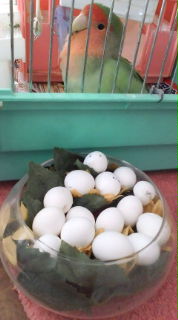 桜が卵を産むようになってから全部取ってあります。卵を産む時、とても辛そうに苦しそうにまるで、人間の陣痛のようにハーハーと、息が荒くなります。そんな思いまでして産んだ卵も、無精卵だから孵らないけど、どうしても捨てられなくて、中身だけ捨てて中に木工用ボンドを詰めてとってあります。毎回もう産まなくてもいいのに・・・と思いますが、仕方ないですよね・・。桜ちゃん、また紙を激しくカミカミ始めました。また、卵を産むようです。