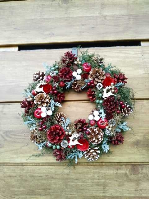 クリスマスリースが玄関のドアに飾られました お嫁さんか購入し皆をびっくりさせました