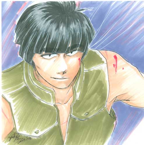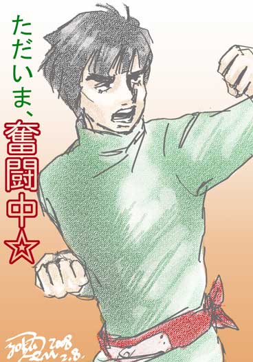 先日からポチポチとフォトショで描いてた別館のイラストが出来ました♪何とかイメージに近くなってほっとしております♪こんな感じの下描きだったのですが・・・えーと。脳内ではこんな感じで ↓↓↓「秘伝!最終奥義発動!!」って感じです♪戦うガイ先生はやっぱり格好よいナァ~~(惚れてます♪)