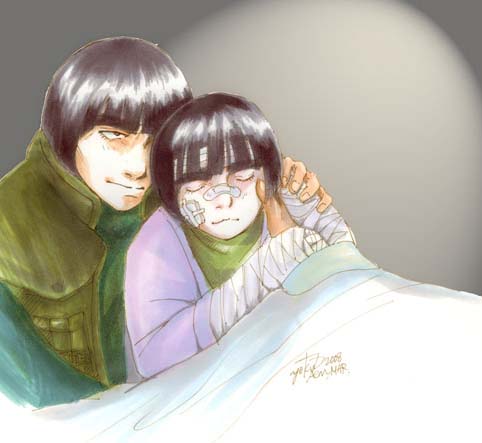 病気が始まりました(苦笑)夢小説、第二弾執筆中です・・・。別館では夢変換かけるようにしますが、セッティングまだなので、ここに一章乗っけます♪お暇なときにお付き合いいただければと思います~~≪1≫「おイッ!翼蓮ッ!翼蓮っ!?」ゆさゆさゆさ。ぺちぺち、ぺちぺち。・・・おお?だぁれ?あたしをゆさぶって、起こすのは。「う・・・ん・・・」眼を開けると、すごい真剣な顔した・・・太い眉毛の男の人が、あたしを抱きしめた。「翼蓮っ・・・」ぎゅっ。ずきん!体のどこかが痛んだ。「いたーーぃ・・・よ」「あっ、すまん」男の人はすぐに離れて、あたしを見た。「む・・。主に、腕と指先だな・・・。まったく、こんなに傷だらけになって・・・。さ、うちに入って、手当てしよう」行動はてきぱきと、そして口調は優しく、その人はあたしを軽々と抱き上げて、ドアを開けた。あたしはソファにそっと座らされて、傷の手当てをうけた。大きな手、太い指・・・なのに、器用に包帯を巻きつけていく。「あの・・・スミマセン、手当て。ありがとうございます・・・」「何言ってるんだ。翼蓮、少しは自分のやんちゃを反省したのか?・・・おい?」男の人の優しげな顔が、一瞬のうちに曇る。「あの、どこかでお会いしてましたっけ・・・?」「・・・・・・・・・えーー・・と」あたしの不安げな声に、彼の太い眉毛の下で、視線が泳いだ。「スミマセン、失礼なこと聞いちゃって」「あ・・いや、いいんだ。いいんだよ、翼蓮・・・さん。俺は、マイト・ガイ。木ノ葉の上忍だ!!」親指を立てて拳を突き出し、口元からは白い歯の輝きがこぼれんばかりのスマイル。彼の微笑みは少々こゆい気もしたが、魅力的だった。「ガイ、さん?」「ガイでいい。実は君と俺とは初対面ではない。そのことは、おいおい話していこう。今夜はもう、寝たほうがいい」「でも・・・」「遠慮することは無いぞ。ここは俺達の・・・いや俺の家だから、遠慮することは無い。さ、手当ては終わった。この薬を飲んで」差し出されるままに、白い粉の薬を飲んだ。「隣の部屋で眠るといい。俺は・・・ここにいるから」木ノ葉ベストを脱ぎながら、男の人は・・・ガイは、言った。男の人と二人きりなんて・・と一瞬思ったけれど、全く不安な感じがしない。こんな人もいるのね・・・と思いつつ、薬の利いてきたあたしは、頭が再びボーっとしてきて、その好意に甘えることにした。「じゃ、おやすみなさい・・・」「ああ」薄暗い部屋、明かりもつけずに手探りでベッドにもぐりこんだ。いったいどうして、あたしったら・・・。思い出そうと目をつぶると、睡魔はすぐに襲い掛かってきて、あたしは暗闇の虜になった。≪続く≫【追記】急に仕事が一本キャンセルになり、チマチマ作業いたしました♪ここにワープホールをこさえたので(笑)よろしかったら、跳んでみてくださいねw夢小説苦手な方は、変換ナシでも読むことができます。その場合はふつーの、お話として読めますので、ご安心くださいね。ア、木ノ葉の猛獣に、注意、です♪では・・・ ワープ!!(笑)