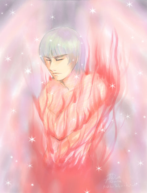 朝孔雀、発動!!例のあのマーカーで、描きました(^^;)背景はフォトショです(汗)最初に朝孔雀を編み出したときは勢いあまって、ガイスーツも燃やしちゃったもよう・・・(爆)無意味に乙女チック加工にて、星が飛んでおりますw