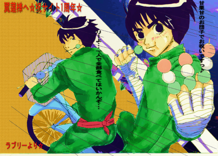 今日はなんもしないで、ネット三昧でした♪いい加減。家事せねば・・・。それにしても外付けのデータが重いとパソコンに愚痴られたよ。仕方なく、今まで描き散らかして未整理だったファイルどもを捨てたり、捨てたり、並べ替えたり・・・。はぁ。ツッ、疲れたぞ。それにしても、ガイ好き~!と叫んでいながら、意外に描いている絵が少なかった。しかも下手ぃ。正直へこみつつ、今後の精進を心に誓う(苦笑)それから、バナー画像をリニューアルしてみたり。別館に素敵なサイト様を一件お迎えしたり♪この方の漫画や夢がいいんですよ♪これからは、直行便で遊びにいけるので良い♪ブログのフォトアルバムの整理もかねて画像の整理もしようと思いました。急にいろんな画像が消えちゃって見難かったらごめんなさい!やりたいことがあるのは良いことだ。うんうん。今週のジャンプも読んだよ。ゼツの言い方だと・・・イタチもタダで死んだわけではなさそうだね。まだ何か裏が隠れていそうです。どうも大蛇丸からサスケを守ったように見えてならない翼蓮デス。そして久々に主人公達登場。おお?シノ!!シノシノ!!蟲とばすのか?また楽しくなるといいんだけれどナァ・・・。サスケはメガネっ子や重吾が助けに行くといいな。鬼鮫と一戦交えてる風の水月は勝ったかな??まさか引き分けて、先にイタチの体を引き取りに来るかな?それともその二人をゼツが食べようとしてる所に・・・!?そして、木ノ葉の里、綱手姫の所には自来也の訃報が・・・!?うちは対決で滞っていた、その他の部分が動き出すとよいよ。さて、夕飯でも、作るか・・・・!!!ガイ先生と一緒に、カレーでも!?