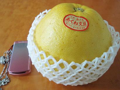 こんばんは!しろくま嫁です。明日は日曜日。。。ですが、私はお仕事です。 明日が仕事の日は早く寝よう!!って思っているのですが、ついつい夜更かししてしまいます。早起きは苦手ですが、夜遅くまで起きているのは大丈夫!しろくま夫は反対です。そりゃあ~もう、早起きは得意っていうか、目が覚めちゃうみたい。先日、 「あくね文旦」 を頂きました。「あくね」とは鹿児島県にある地名で 「阿久根市」の事です。大きな大きな柑橘です。 味は、グレープフルーツみたいです。文旦と同じような柑橘で 「サワーポメロ」 というものもあります。大きさは 阿久根文旦よりひと回り小さくて、さっぱりした味サワーポメロの紹介文があったので。鹿児島に古くからある文旦の仲間で昔は「大橘(おおたちばな)」と呼ばれておりました。普通の文旦に比べ、香りも味も良いことから、皆様に広く知っていただくために一般の公募より「サワーポメロ」という名前が命名されました。独特のいい香りを放ち、天然の芳香剤としてすがすがしい香りが広がります。爽やかな甘さと程よい酸味が織り成すハーモニー。お口の中へ入れると「プチッ!」と弾けて「ジュワー!」と広がります。まるで真珠のような果肉で、一度召し上がると忘れられない逸品になります。 とにかく、美味しいのだぁ~ (●^o^●)V