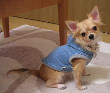 初の上着を作りました今までの比較的簡単なお洋服よりは、ちょっと手の込んだものですこの本の、一番最初に載っていた、ジップアップフリースパーカですファスナーが付いたお洋服は初めてです上着になるようなのも、初めてです縁取りは、明るいイエローのバイアステープを使い、身頃は紺のフリースです。フードの裏側は、明るいイエローのボーダー柄のニット地を使いました。出来上がりは、こちらこの本は、実寸の型紙が付いてるのですが、どれもモデルの子に合わせたサイズだけ。ということで、ちっちゃいチワワちゃんが着てるこのお洋服は、よもぎにとってはかなりのお直しが必要でしたお直しするついでに、あったかいお洋服になるように、丈なども長めに変更しましたなんとよもぎ、この本の中ではかろうじて、パピヨンちゃんの型紙ならぴったりです。とほほ・・・チワワのはずなんですけどね、よもぎさんは。でもこのジップアップパーカ、とっても似合うんですよ~(親ばか)ちょっとゆったり目に作ったので、寒くなったら、インナーにプレーンなTシャツや、ハイネック、シャツなど合わせて着せようと思ってますコレに先立って、少し前に会った、よもぎの親戚さん3姉妹わんこちゃんたちに、お揃いのお洋服を作りました遊んだときの様子はこちらです三姉妹は、上からいちごちゃん、りんごちゃん、すももちゃんなのですが、いちごちゃんの分だけ遊んだ当日に持参し、りんごちゃんとすももちゃんの分は、あとから作って送りました同じ、マルチボーダーのニット地に、それぞれ、赤・黄色・オレンジでトリミングしました。いちごちゃんの写真だけ自然光なので、色がイマイチ分かりにくいのですが、3姉妹ちゃんたちのお写真はこちらですいちごちゃん りんごちゃん すももちゃんいやぁ~、やっぱりお揃いって本当にかわいいなぁ最近、多頭飼いの方にお会いする機会が多くて、見るたびに羨ましくなっちゃいます。ま、今住んでるところは1匹のみなので、無理なんですけどね最近、布をどんどん買ってしまって、作る暇があまりありません布があふれてきてるので、作らなくっちゃなんですけどね~