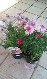 ピンクのマーガレットを見つけました