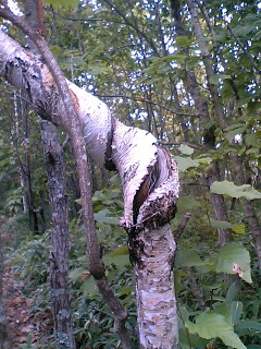 すごい木発見!白樺の木です。木にたぶん山ぶどうのつるが巻きついてこうなったと思います。でも上のほうには、沢山の葉がなっていました♪生きているんだd(^-^)ネ!生命力って素晴らしいなあと思いながら木の力をもらってきたよ♪